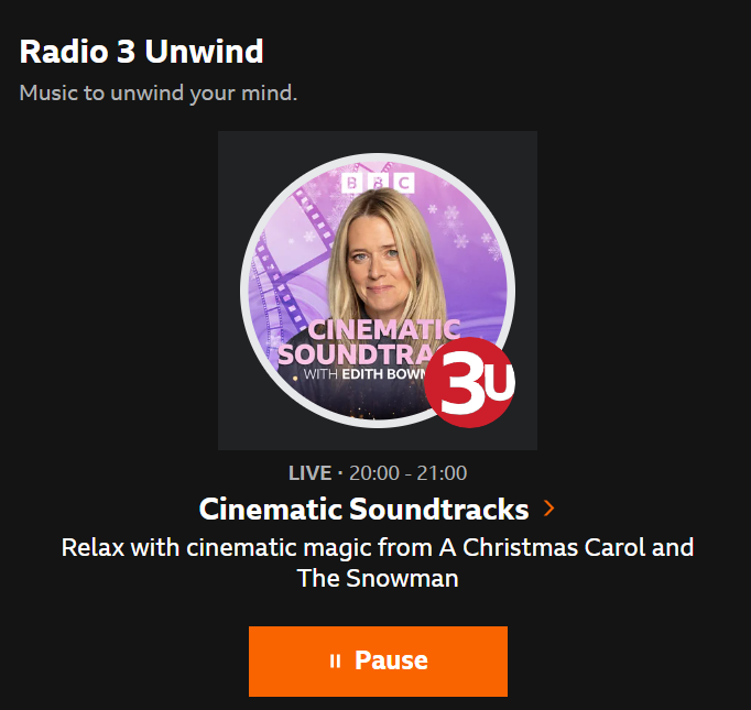 We all know about wind up radios. How about a radio channel to unwind to. I have become fond of popping on BBC Radio 3 Unwind to – unwind to. It is also available on BBC Sounds (UK only) and Radio.ie player here with 6 hours of rewind to unwind to.